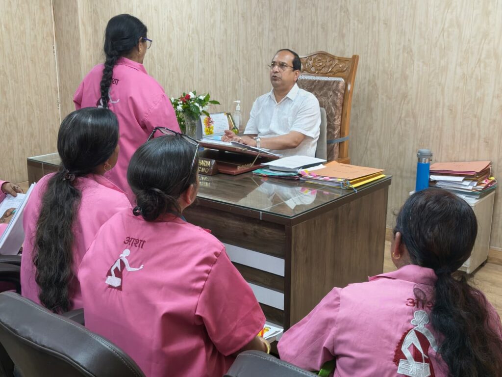 मुख्य चिकित्सा अधिकारी डॉ. मनोज कुमार शर्मा द्वारा देहरादून जनपद के शहरी क्षेत्र में कार्यरत आशा कार्यकत्रियों की दैनिक डायरी का अवलोकन किया गया। मुख्य चिकित्सा अधिकारी कार्यालय में शहरी क्षेत्र के अंतर्गत मन्नूगंज से आशा मजू काला, बिंदाल बस्ती से लक्ष्मी देवी, भगत सिंह कॉलोनी से ममता पाल, गुरू रोड से अनिता देवी, संजय कॉलोनी मंजू रानी, शिव कॉलोनी से मंजू बाला अपनी दैनिक डायरी लेकर उपस्थित हुई।