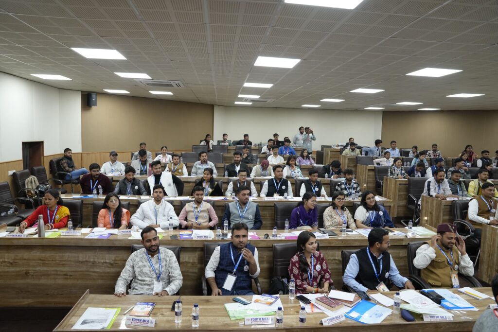 सांय के सत्र में बतौर मुख्य अतिथि दून विश्वविद्यालय की कुलपति सुरेखा डंगवाल उपस्थित रही। उन्होंने युवाओं को जिम्मेदारी, पारदर्शिता और जनसेवा के मूल्यों को प्राथमिकता देने की सलाह दी। और अपील की कि वे शिक्षा, स्वास्थ्य, रोजगार और तकनीकी नवाचार जैसे मुद्दों पर विशेष ध्यान दें तथा समाज के सभी वर्गों के हितों का संतुलित रूप से प्रतिनिधित्व करें। बतौर विशिष्ट अतिथि भाजपा युवा मोर्चा के अध्यक्ष विपुल मैंदोली ने कहा कि राजनीति में युवा शक्ति परिवर्तन और सकारात्मक सोच की प्रतीक है, इसलिए युवा विधायक पारदर्शिता, ईमानदारी और जनसेवा की भावना के साथ कार्य करें।