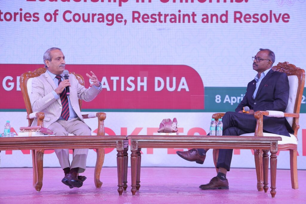 ले. जनरल सतीश दुआ ने अपनी किताब ‘लीडरशिप इन यूनिफॉर्म्स : स्टोरीज़ ऑफ करेज, रीस्ट्रेंट एंड रिजॉल्व’ के बारे में चर्चा की। इस किताब में उन्होंने भारतीय सेना में रहते हुए आतंकियों के खिलाफ चलाये गये ऑपरेशन्स और उरी हमले के बाद भारतीय सेना द्वारा की गयी सर्जिकल स्ट्राइक्स के अनुभव, रणनीति और रोमांचक कहानियों के बारे में बताया। उन्होंने कहा कि सर्जिकल स्ट्राईक के बाद भारत ने देश-दुनिया में भारत की सैन्य ताकत का लोहा मनवाया है। आज भारत सैन्य तकनीक और साजोसामान निर्माण के क्षेत्र में आत्मनिर्भर बनने की दिशा में अग्रसर है।