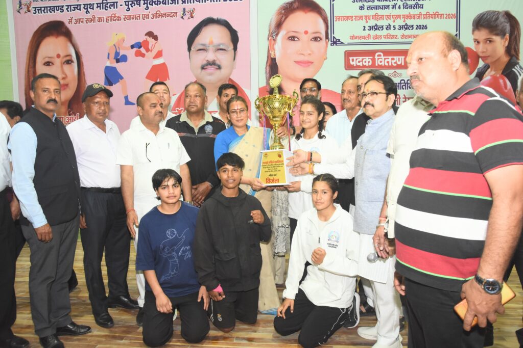 उत्तराखंड यूथ महिला एवं पुरुष मुक्केबाजी प्रतियोगिता 2026 में बालिका वर्ग में पिथौरागढ़ की टीम ओवरऑल चैंपियन बनी है। हरिद्वार के योगस्थली खेल परिसर के मल्टीपरपज हॉल में प्रतियोगिता का भव्य समापन किया गया। इस अवसर पर रेखा आर्या ने विजेता खिलाड़ियों और टीमों को ट्रॉफी व मेडल देकर सम्मानित किया।