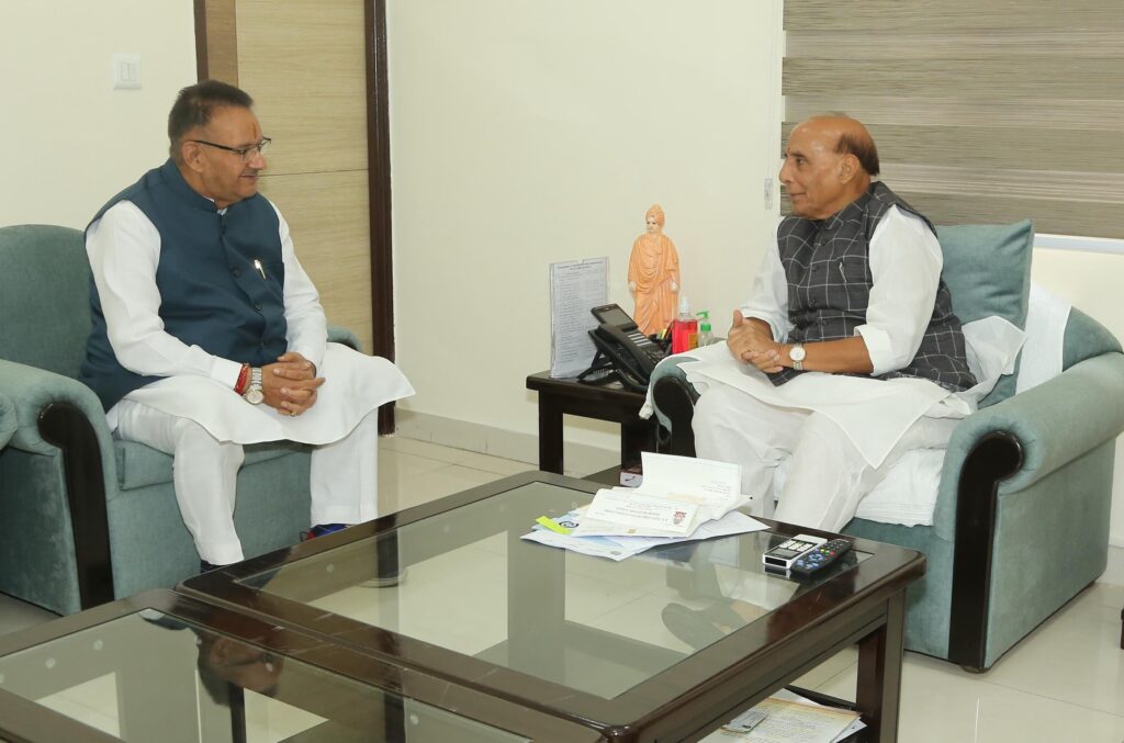 उत्तराखण्ड के सैनिक कल्याण मंत्री गणेश जोशी ने नई दिल्ली में देश के रक्षा मंत्री राजनाथ सिंह से शिष्टाचार भेंट की। भेंट के दौरान सैनिक कल्याण मंत्री गणेश जोशी ने उत्तराखण्ड राज्य में सैनिक कल्याण से जुड़ी विभिन्न योजनाओं और चल रहे कार्यों की जानकारी दी तथा पूर्व सैनिकों और शहीदों के परिजनों के हित में किए जा रहे प्रयासों पर चर्चा की। उन्होंने राज्य में निर्माणाधीन सैन्यधाम परियोजना की प्रगति की जानकारी भी रक्षा मंत्री को दी।दीपावली से पहले केंद्र सरकार ने पूर्व सैनिकों और उनके आश्रितों को दी गयी सौगात को लेकर भी कैबिनेट मंत्री गणेश जोशी ने रक्षा मंत्री का आभार प्रकट किया। उन्होंने कहा कि केंद्र सरकार ने निराश्रयता अनुदान को 4,000 रुपये से बढ़ाकर 8,000 रुपये, शिक्षा अनुदान को 1,000 रुपये से बढ़ाकर 2,000 रुपये तथा विवाह अनुदान को 50,000 रुपये से बढ़ाकर 1 लाख रुपये कर दिया है।
