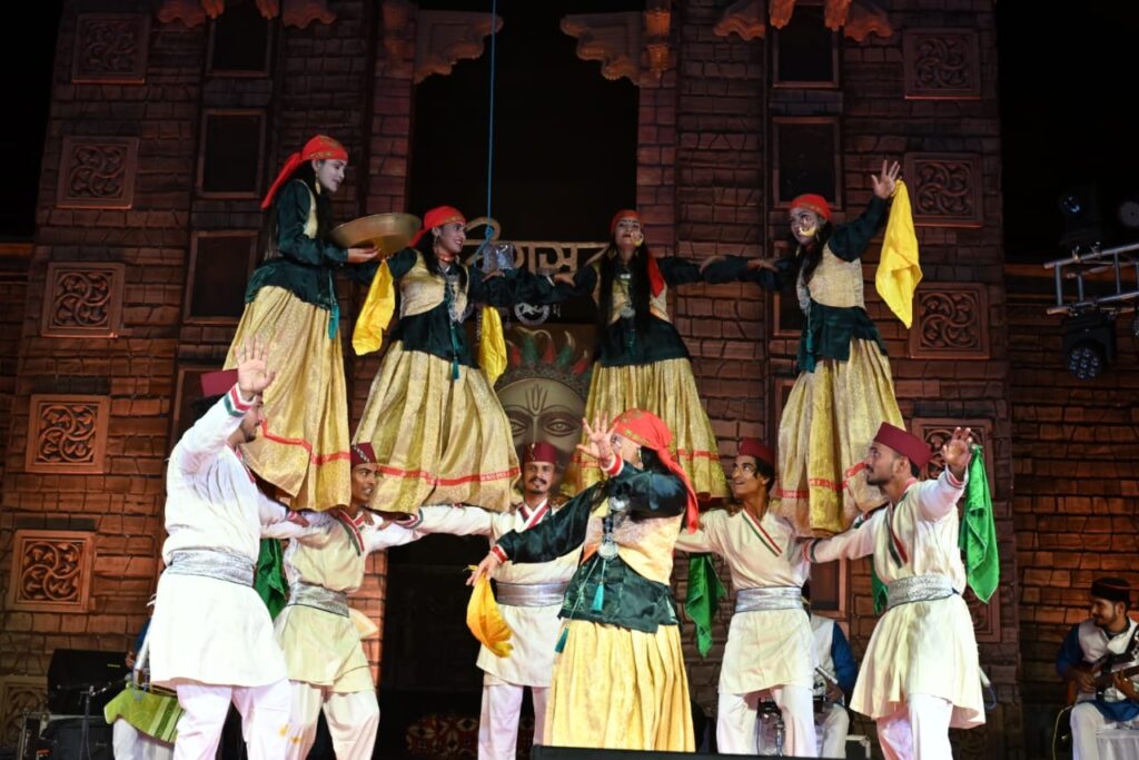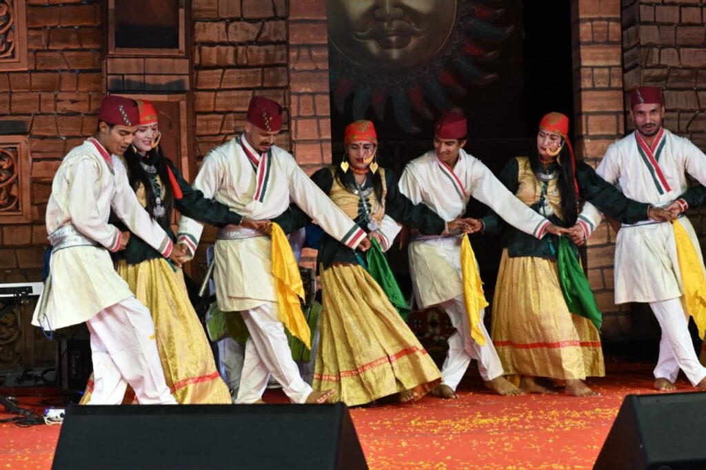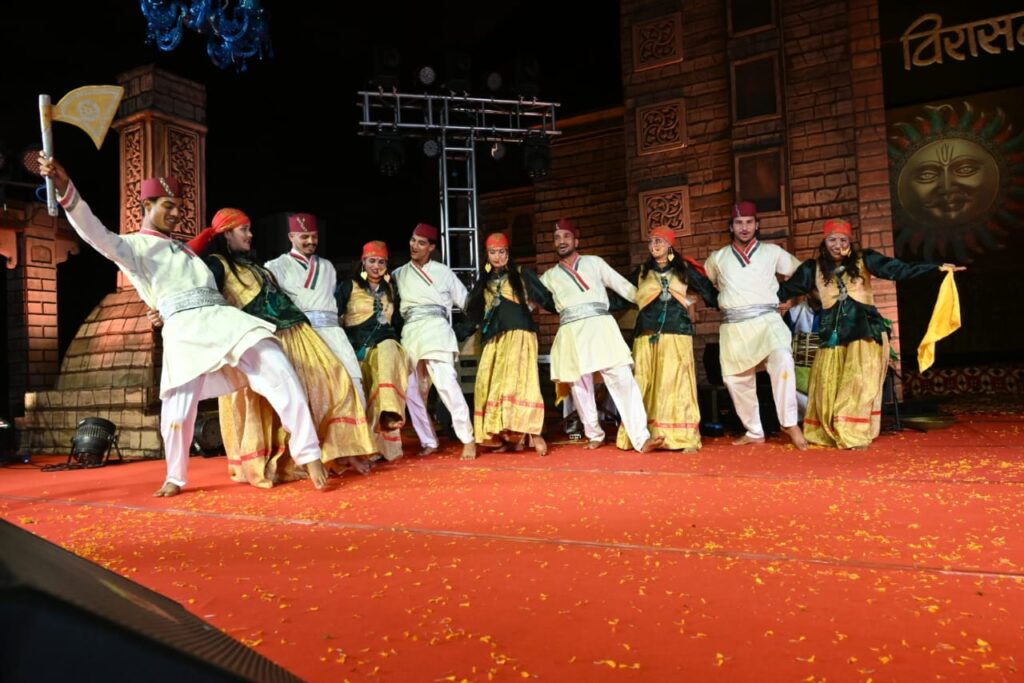 विरासत सांस्कृतिक संध्या कार्यक्रम की शुरुआत उत्तराखंड के जौनसारी लोकगीत एवं नृत्य के साथ प्रारंभ हुआ, कार्यक्रम को जौनसार बावर मेरो मुलुक लोक सांस्कृतिक एवं कला मंच द्वारा प्रस्तुत किया गया। समिति समूह में कुल 20 प्रतिभाशाली सदस्य (15 पुरुष और 5 महिला कलाकार) शामिल रहे। , जौनसार क्षेत्र की समृद्ध सांस्कृतिक परंपराओं को प्रदर्शित करते हुए एक मनोरम लोक नृत्य प्रस्तुति प्रस्तुत किया गया जिसे विरासत में मौजूद सभी दर्शन मंत्रमुग्ध हो गए।यह प्रस्तुति भगवान महासू को समर्पित एक भावपूर्ण आह्वान “महाशो वंदना” से शुरू हुआ और पारंपरिक लोकगीत “हरोल” के साथ एक जीवंत स्वर में समाप्त हुआ। उनकी प्रस्तुति में स्वर, लय और लोक वाद्यों का अद्भुत मिश्रण रहा जो समुदाय की गहरी सांस्कृतिक जड़ों को दर्शाता है।